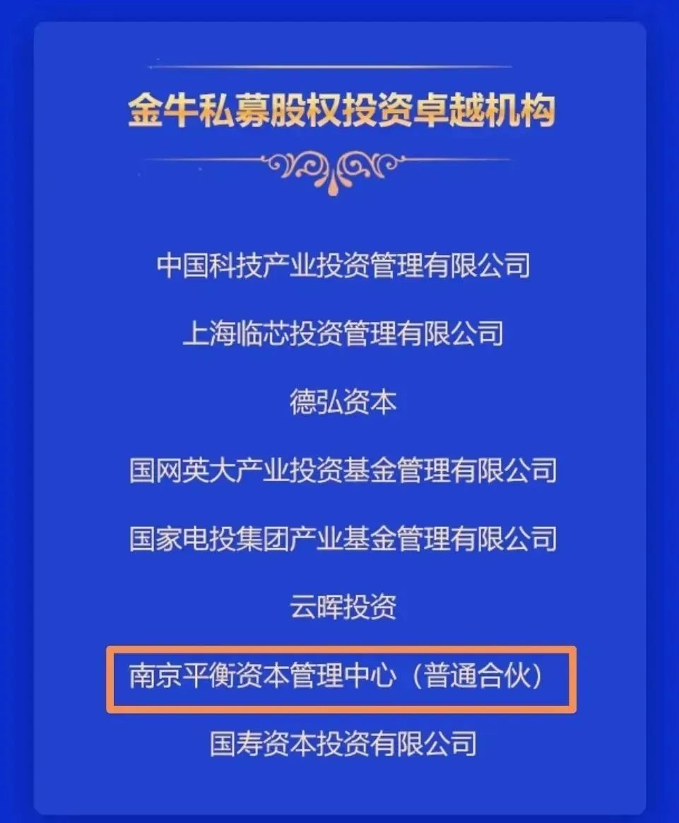 2023年11月7日,由中国证券报主办的“2023股权投资发展论坛”在南京隆重举行。平衡资本凭借优异的投资管理能力,荣获第七届“金牛私募股权投资卓越机构”荣誉。